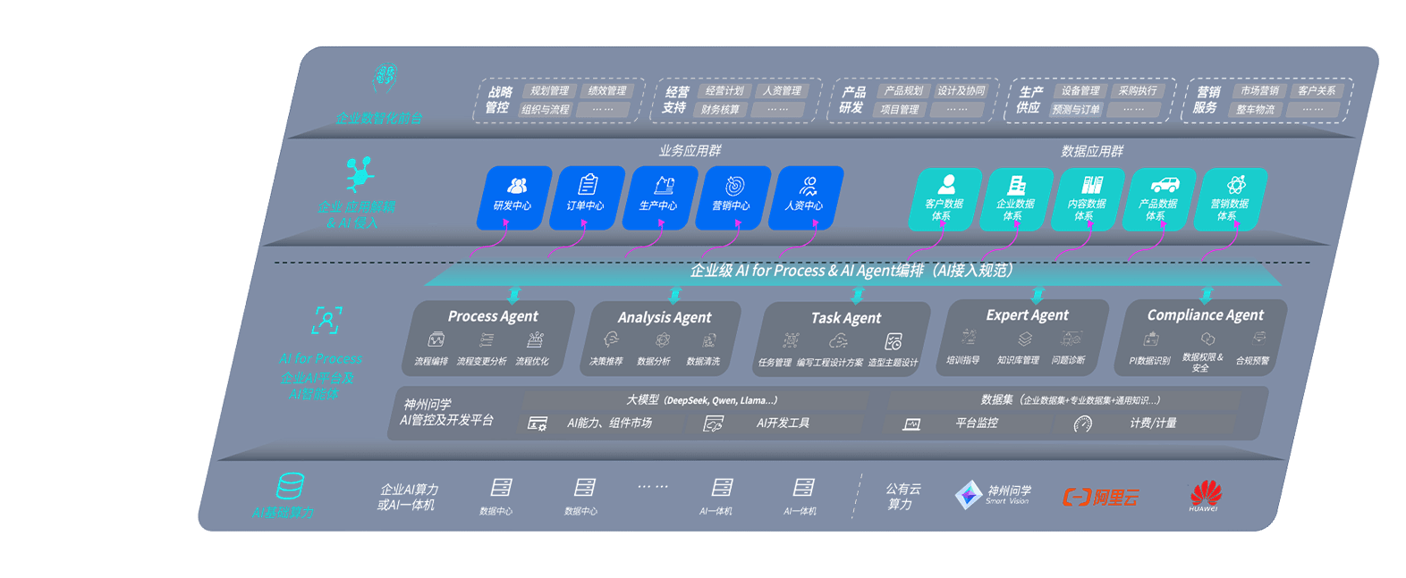 ALLWIN问学智车解决方案是一套基于AI技术的汽车行业智能化系统,,,,覆盖从底层算力到顶层AI应用的全栈方案。。方案由算力层、、、、模型层和应用层组成:算力层,,,,方案支持多种一体机配置,,,具备云端灵活部署、、、多云适配以及动态优化计算资源的能力;模型层,,,ALLWIN问学平台版提供了企业级AI应用一站式构建与管理平台,,支持基于后训练强化技术的汽车企业专属模型的训练、、、、评测和运营;应用层,,ALLWIN问学DeepSeek版提供包括超级员工、、智能招采、、智能营销、、智能客服、、、、AI for BI等一系列解决方案,,,,可助力汽车行业实现数字化转型,,,,让管理更智能、、响应更敏捷。。